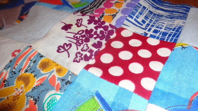 Такие одеяла были во многих домах когда-то. Создавались одеяла из маленьких лоскутков, бережно хранимых где-то... Вот и я, собрав часть моих запасов, нарезав их, стала создавать свою семейную реликвию. Пока всего три блока....